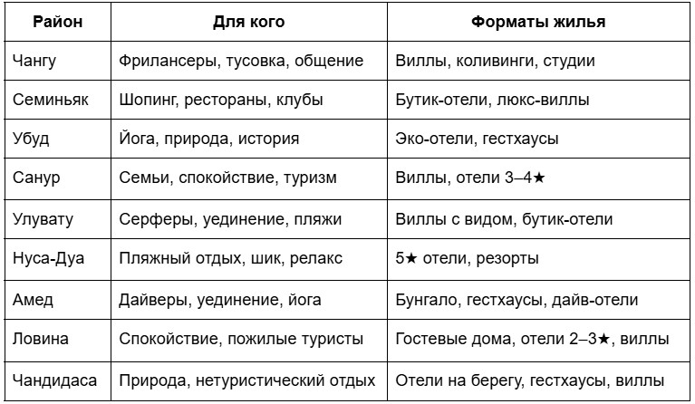 - Серферы/йоги: жилье вблизи спотов или ретрит-центров.