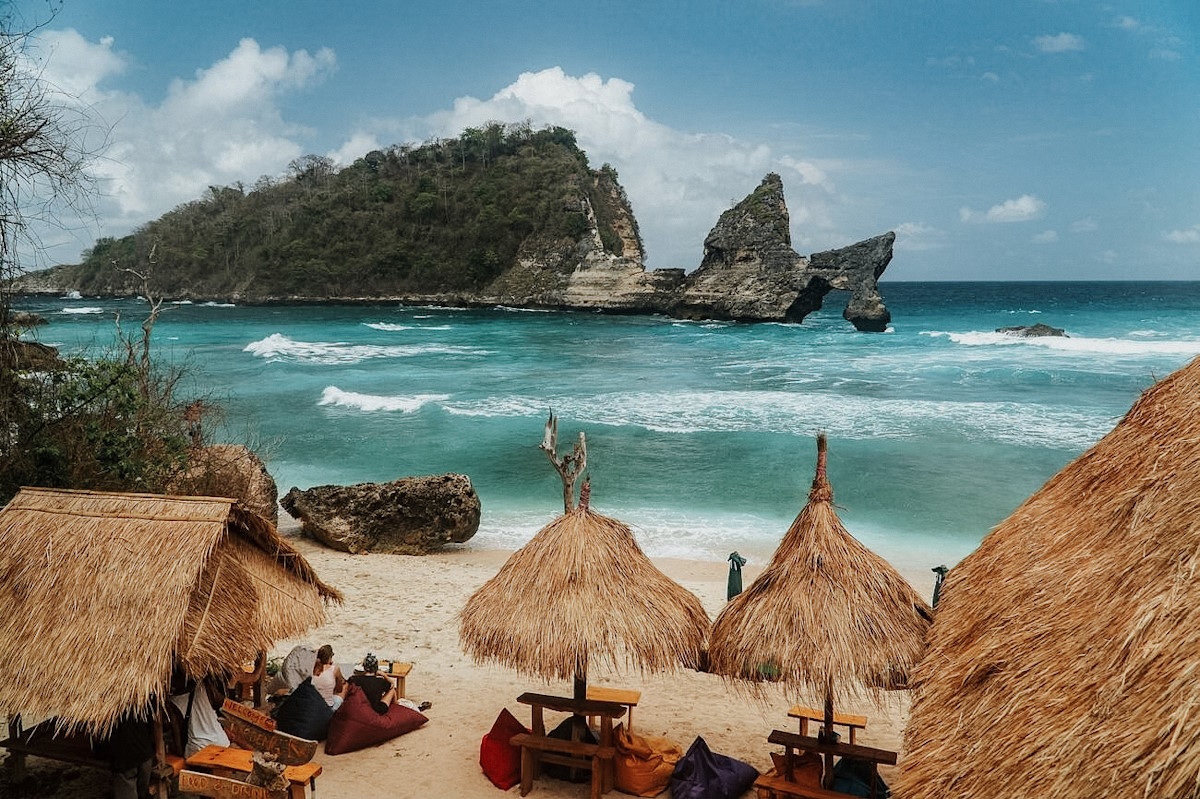 Atuh Beach — бухта, окруженная высокими скалами, к которой ведет крутой спуск. Уникальность пляжа в его форме: когда вода отливает, появляются песчаные отмели, а из моря поднимаются карстовые арки и скалы, похожие на природные ворота. Место долгое время оставалось неизвестным даже среди балийцев, так как дорога была трудной. Сегодня спуск к пляжу оборудован лестницами, а внизу даже можно найти пару варунгов с напитками. Во время отлива вода уходит далеко, открывая богатую морскую жизнь.