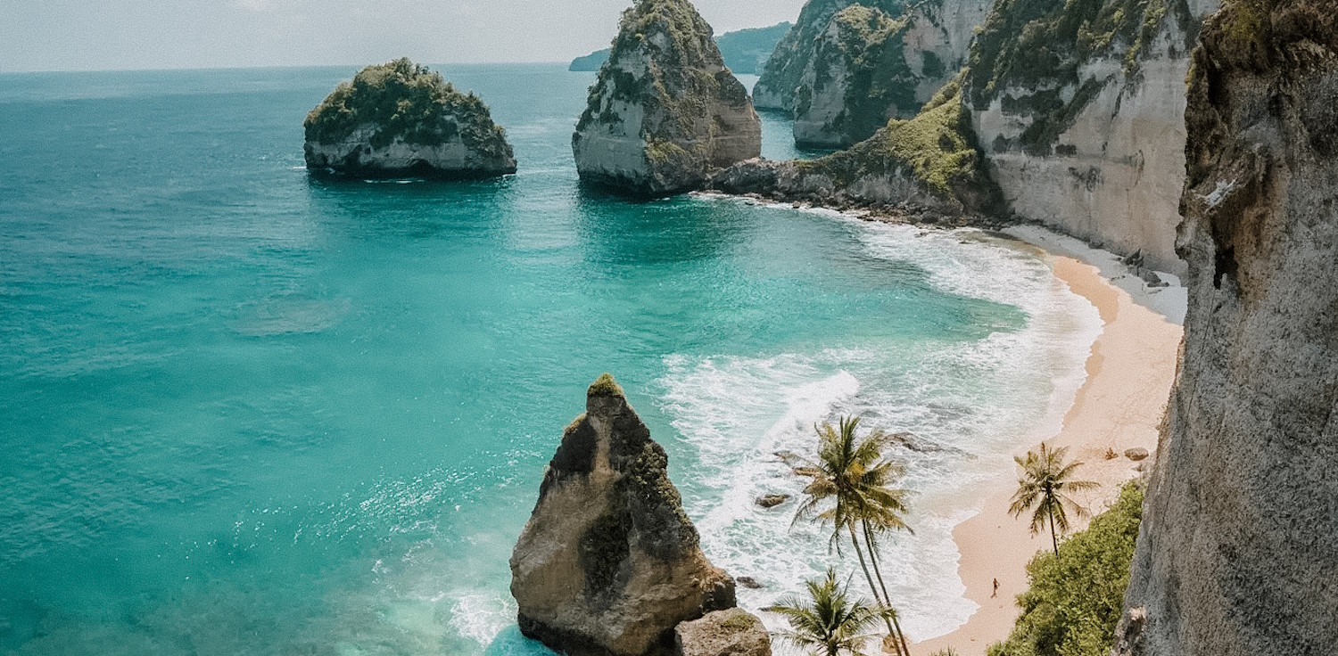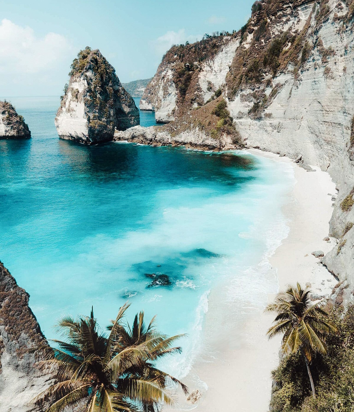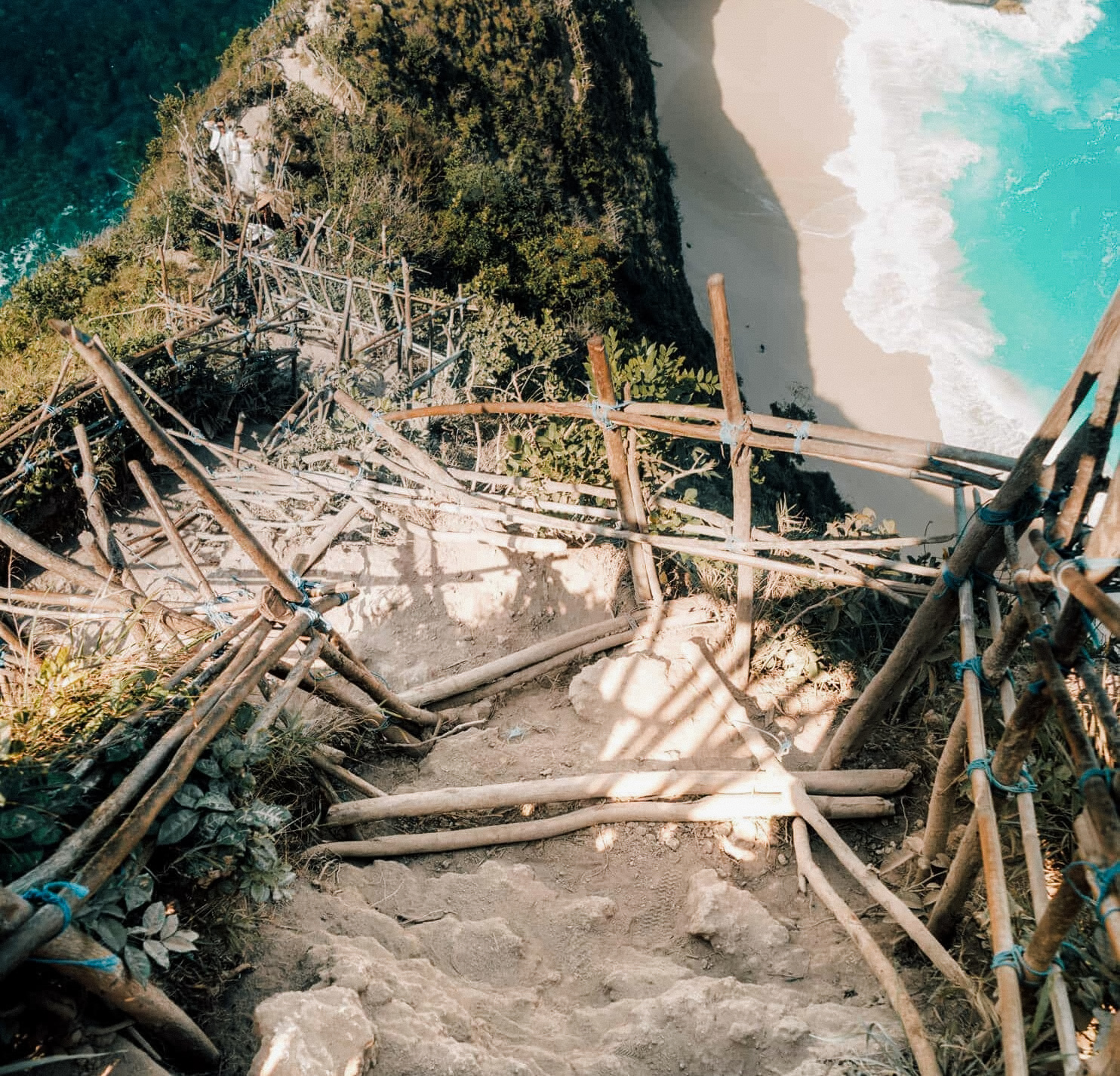 Diamond Beach находится в восточной части Нуса Пениды, рядом с Atuh, но отличается своей атмосферой. Пляж получил своё название из-за белых скал, напоминающих алмазы, которые словно «растут» из песка. Несколько лет назад сюда не было никакого спуска и только крутой обрыв. Лестницу вырубили вручную и проложили в 2018 году и с тех пор Diamond стал хитом Instagram. Спуск сам по себе приключение. Каменные ступени, веревочные перила и потрясающие виды: каждый шаг стоит усилий. Внизу пляж небольшой с ярко-бирюзовой водой, идеальный для фото, но купаться здесь небезопасно — сильные волны и подводное течение. Однако просто быть здесь уже достаточно, чтобы почувствовать себя в настоящей жемчужине Индонезии.