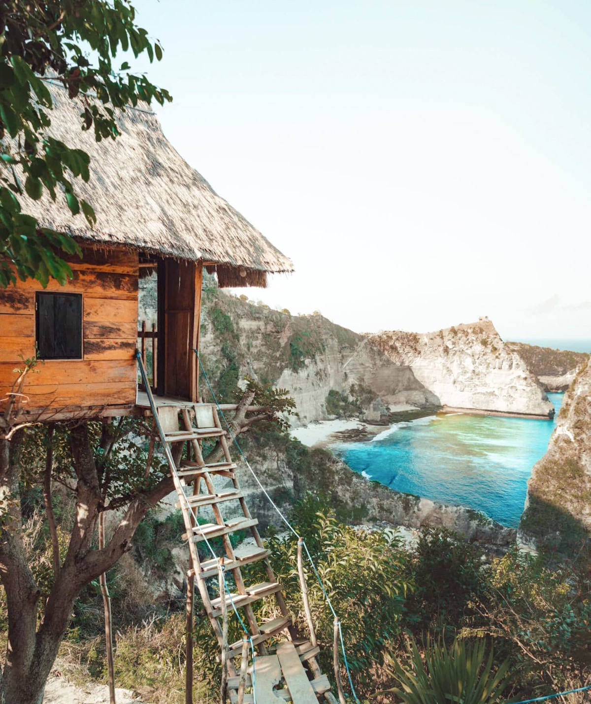 Rumah Pohon — означает “дом на дереве”. На Нуса Пенида «Rumah Pohon» стало нарицательным именем конкретного места, но в целом это обычное словосочетание в индонезийском языке, которое используется по всей стране. В прошлом это место использовалось местными как смотровая точка для наблюдения за лодками и переменами погоды. Сейчас же: фото-символ мечты о простоте и покое. Это небольшой деревянный домик, построенный на дереве на краю обрыва с захватывающим видом на бухты Diamond и Atuh Beach. Instagram сделал это место культовыми. Сегодня сюда приходят ради фотографий с лестницы, ведущей в «домик мечты». Фото отсюда стало символом романтики и уединения. Но за кадром — очередь (иногда больше часа) для возможности подняться по деревянной лестнице и сделать кадр.