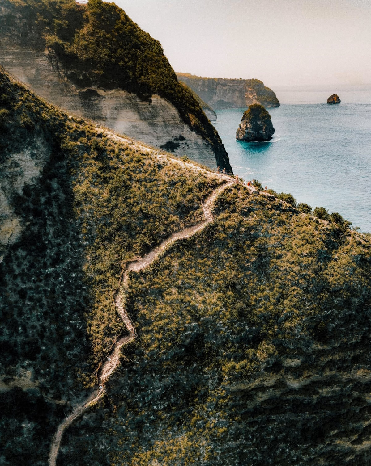 Kelingking это икона Нуса Пениды и главная точка, которую нужно посмотреть. С обзорной площадки можно увидеть, как огромная скала уходит в океан, образуя миниатюрный белый пляж внизу. Этот вид настолько популярн, что во многих путеводителях фото этого пляжа ставят как иллюстрацию Бали. Название «Kelingking» переводится как «мизинец», но туристы переименовали его в «T-Rex Point» (скала напоминаем голову этого динозавра-хищника). Ранее это было место паломничества, здесь проводились обряды местного культа, а опасный путь вниз использовался лишь избранными.