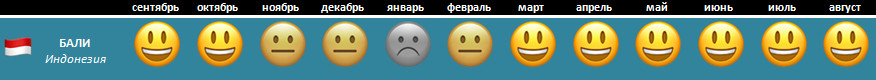 В сухой сезон на Бали вас ждет голубое небо с ярким солнцем. В сезон дождей солнца тоже достаточно, ведь здесь не бывает муссонных ливней, это как правило кратковременные тропические дожди. Температура воды в океане комфорта для купания круглый год и составляет +26…+29°C. Далее подробно расписан год и сезон на Бали по месяцам.