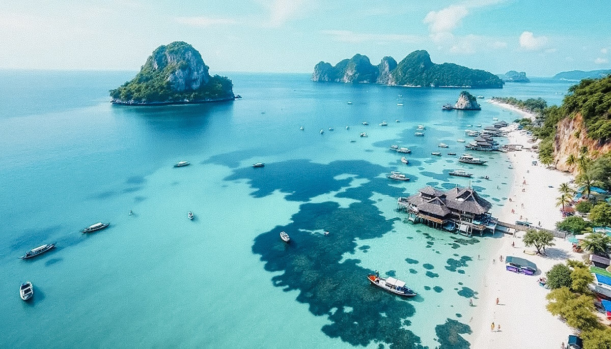 Примерно в 38 км к юго-западу от Краби расположены невероятно живописные острова Ко Пхи Пхи Дон и Ко Пхи Пхи Лей — настоящая Шангри-Ла Таиланда: рай для кайфовщиков и тусовщиков, где туристы резвятся в лазурных водах, веселятся всю ночь напролёт на пляжах и делают фото длиннохвостых лодок, снующих между скалистыми утесами. С его белоснежными пляжами и роскошными джунглями неудивительно, что Пхи Пхи стал жемчужиной мирового пляжного туризма. Это одно из тех мест, которое по праву входит в топ Лучшие курорты Таиланда. Ко Пхи Пхи Дон фактически состоит из двух частей, соединенных узким перешейком, по бокам которого расположены пляжи Тонсай и Ло Далам. Лодки причаливают к первому из них. Этот центральный песчаный перешеек: хаотичный, тесный участок с бесконечными стройками и завышенными ценами на жилье. Более симпатичным считается пляж Хат Яо (Long Beach), который смотрит на юг.