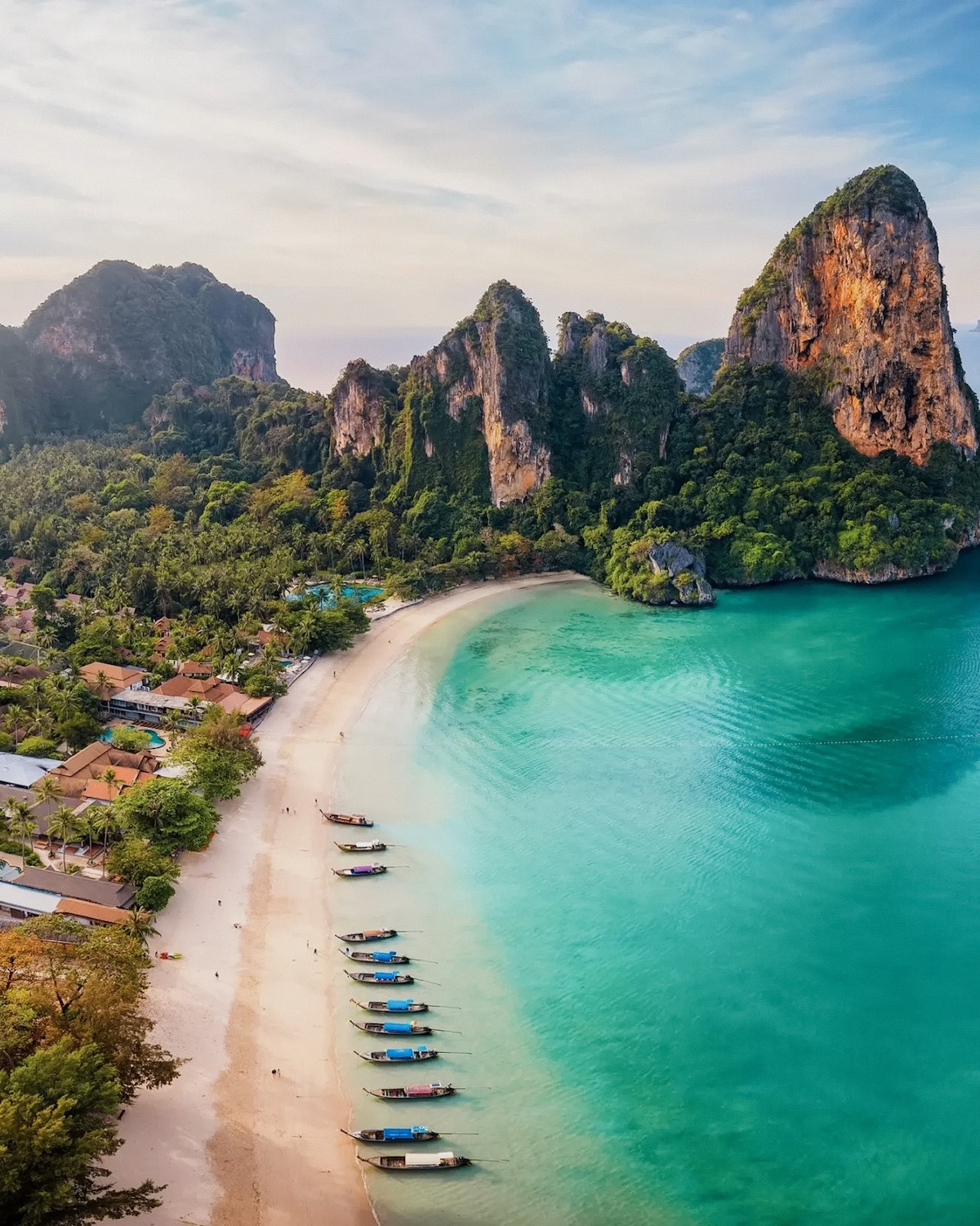 В сухой сезон море у берегов Краби светится бирюзой, а в сезон дождей вода может помутнеть до кофейного оттенка (из за бурных рек, впадающих в море). Если хочется поплавать в более чистой воде, всегда можно взять тур на один из местных островков у горизонта, там море обычно чище в любое время года. Ао Нанг компактен и удобен для передвижения. Он не так дешев и аутентичен, как сам город Краби, но зато чище, солнечнее и у самого пляжа. Здесь есть чем заняться: дайвинг, прогулки по мангровым лесам, снорклинг, кайтсерфинг. Всего 40 минут от аэропорта Краби и 15 минут на лодке до впечатляющего Рейли: карстовые скалы Краби достигают своего сказочного апогея именно здесь (многие сравнивают эти места в Краби и Эль Нидо на Филиппинах). Многие довольствуются простым наблюдением этих фантастических видов со стороны пляжа. А фанаты скалолазания используют эти геологические образования, как естественный тренажерный зал в джунглях🧗🏻♀️ Добраться к Рейли можно только на лодке: этот кусочек рая уютно разместился на песчаном «мостике» между отвесными скалами. Он совсем рядом с Ао Нангом, поэтому туристическая суета иногда добирается и сюда, но в целом атмосфера остается расслабленной: в духе тайско-растаманского безмятежья.