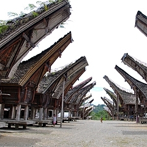 является христианами, другие мусульманами. Слово Toraja означает «люди из возвышенностей» — племя славится применением сложных погребальных обрядов в виде захоронений, высеченных в скалах — при этом погребальная церемония является важным социальным событием и длится несколько дней. Кроме того, Тораджа известны традиционными постройками своих жилищ с использованием массивной остроконечной крыши (tongkonan) и красочной резьбы по дереву — в строительстве используется бамбук и пальмовый лист.