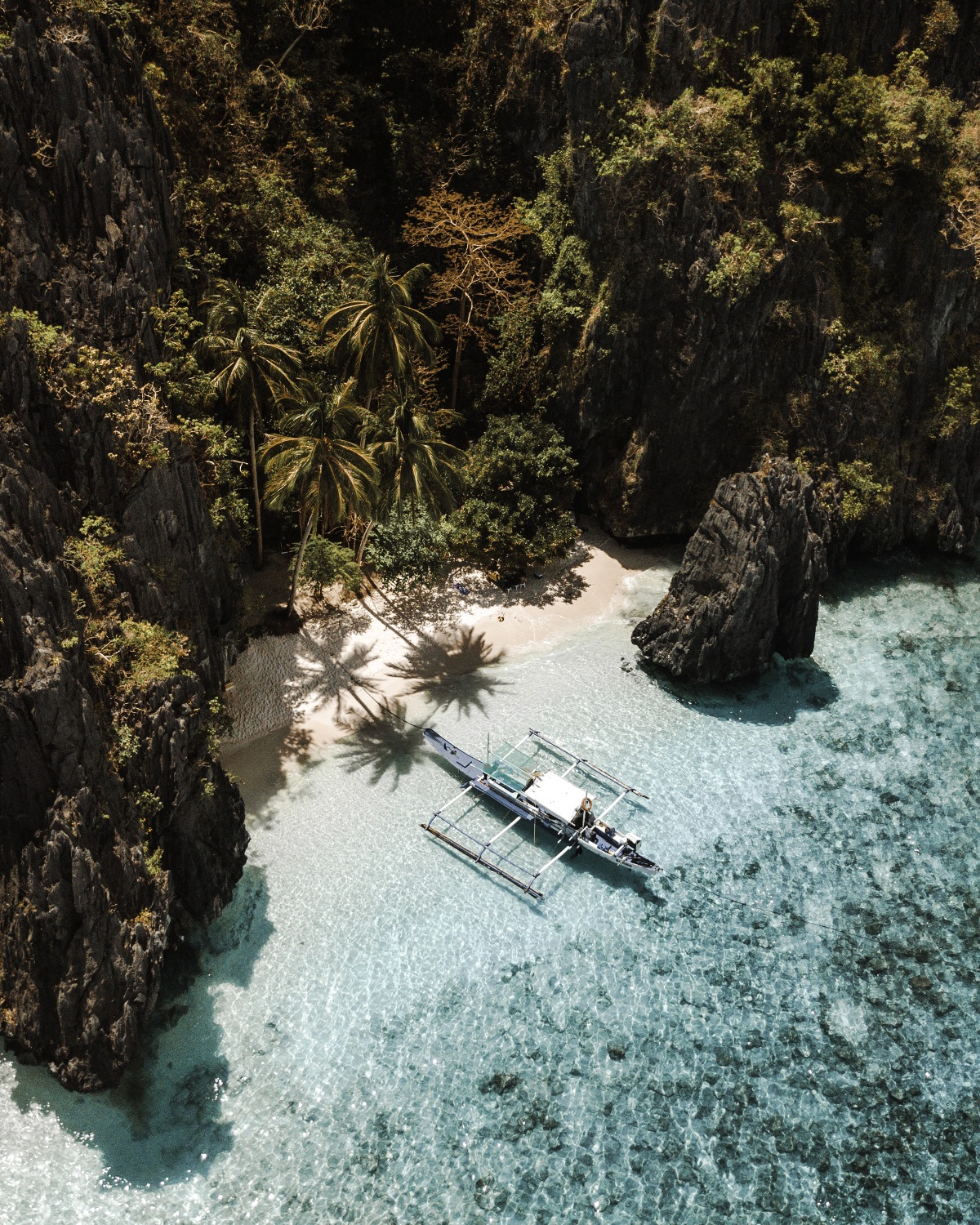 Карстовые острова окружают Эль Нидо. Здесь их десятки. Каждый причудливой формы. А между скал белеют пляжи и зеленеют верхушки кокосовых пальм. Сегодня отправляемся в тур на большой лодке на исследование островов, покупаться с маской, побродить по пляжам и рассмотреть эту красоту вблизи.