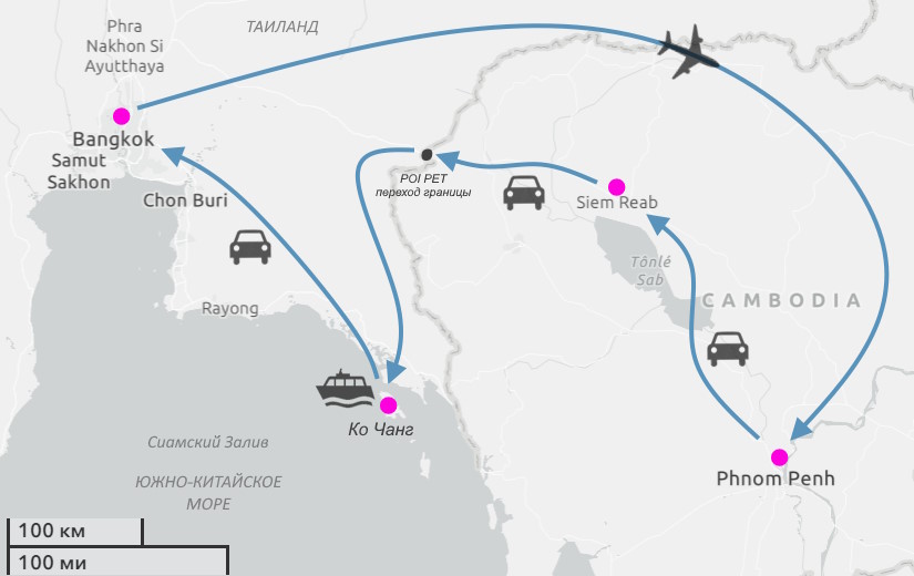 Для данного тура доступна опция: добавить посещение столицы Камбоджи — города Пномпень. Доплата от $100/чел. Карта: