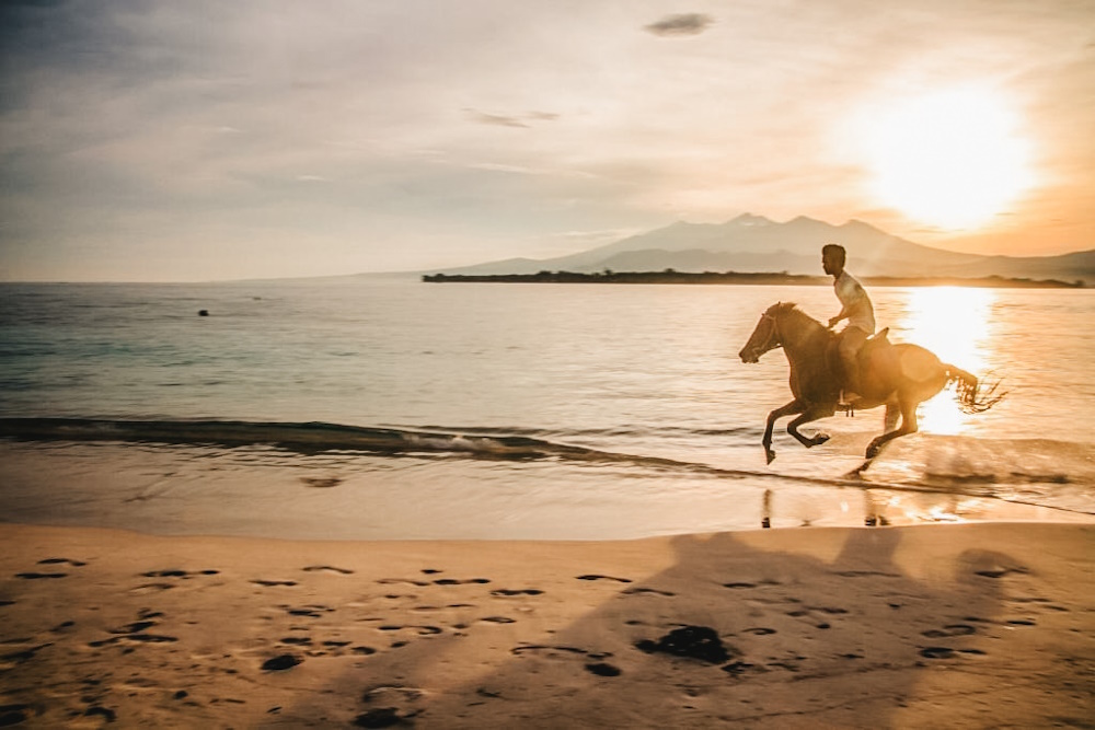 верхом на коне вдоль пляжа ночная жизнь Гили |